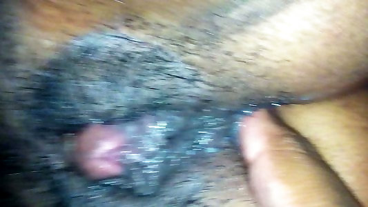 Lengthy haired dark-hued guy tongues and pokes wooly cooch of his dark-hued girlfriend