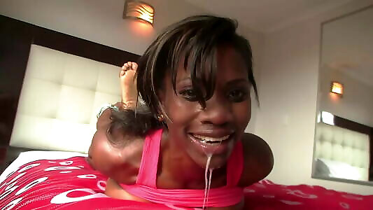 Busty ebony chick drinking huge manhood