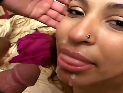 Shy virginal Muslim teenie gives extraordinaire bj for facial cumshot!