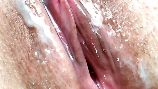 Her swollen creamy cunt is delicious! Eating a aroused puffy pussy. Creampie. Female orgasm. Extreme close-up.
