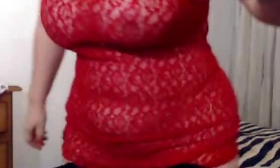 Huge Tits Milf Fingers Her Wet Pussy in Red Lace Dress
