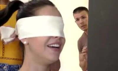 Blindfold Busty Brunette Gets Fucked By Her Sneaky Friends!