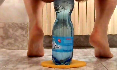 Water Bottle Insertion Into Shaved Pussy: Unusual Pleasure For Anglo-Saxon Beauty