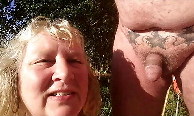 Blowjob Bliss: Hot Teen Sucks Dick in Grassy Field as Old Dude Jerks Off!