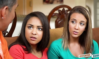 Tight Latin Ass Shakes as Young Layla London Sucks Off Older Dudes' Huge Cocks!