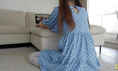 Horny Russian Girl Sucks Cock Before Sexy Pantyhose Call