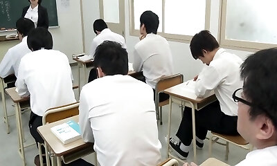Horny Japanese Teacher Gives Blowjob During Class